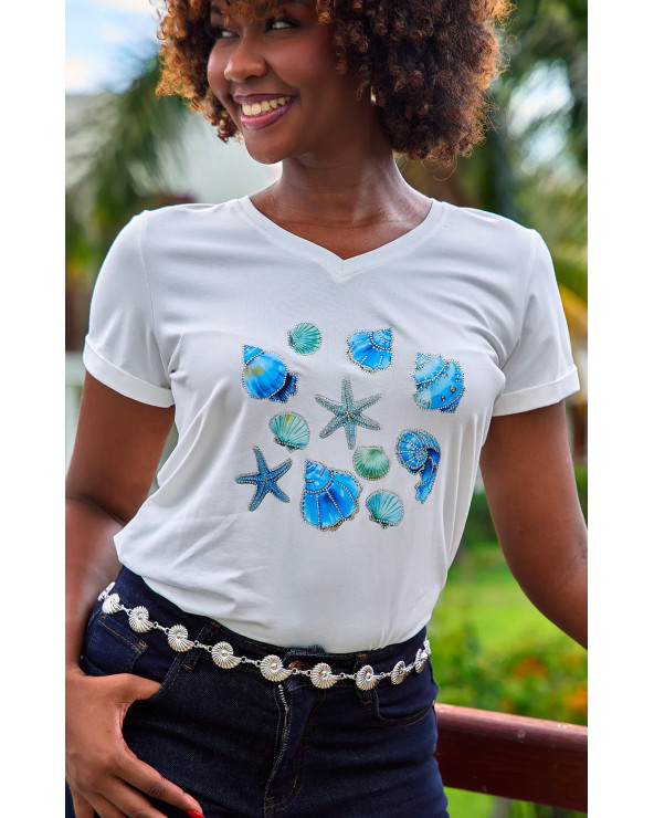 New Liste de souhaits Aperçu rapide NOIR ECRU T SHIRT COQUILLAGE STRASSE 650 Rs Le t-shirt, léger et décoré de motifs de coquillage, apporte féminité et confort. La version fillette assortie permet de reproduire le style...
