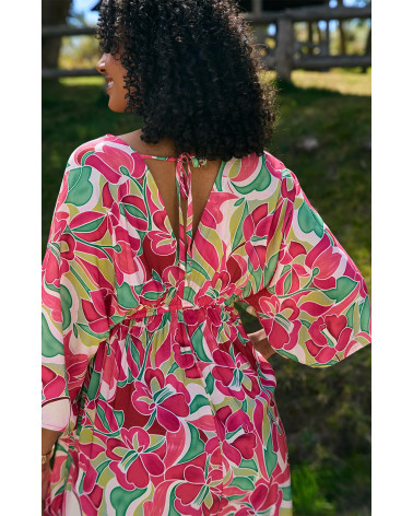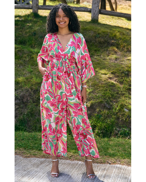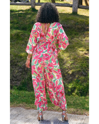 La coupe large et fluide de la combinaison Davina est sublimée par des motifs floraux colorés, tandis que le décolleté en V et le dos nu léger apportent féminité et modernité. La taille resserrée avec fil ajustable structure la silhouette, et la bride traversant le dos d’un côté à l’autre ajoute un détail original et raffiné. Parfaite pour un style chic et bohème.