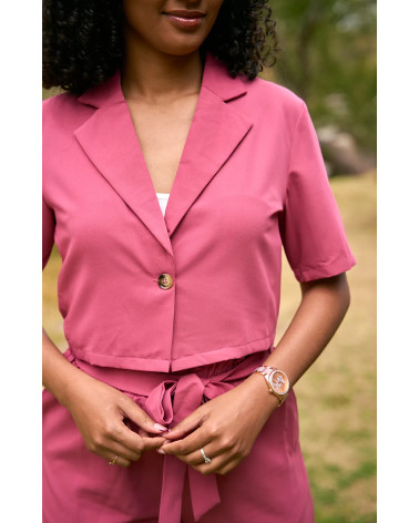 Adoptez un look féminin avec l’ensemble Fraisia. Le haut style caraco chemise courte se distingue par son élégante boutonnière, tandis que le short simple est doté d une ceinture à nouer à la taille pour un ajustement parfait et une touche chic. Confortable et léger, cet ensemble est idéal pour les journées ensoleillées ou les sorties décontractées tout en restant stylé.