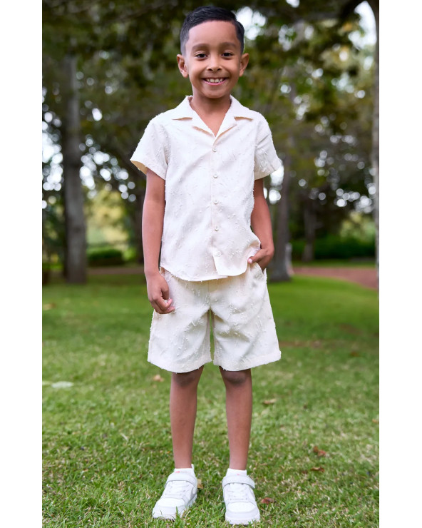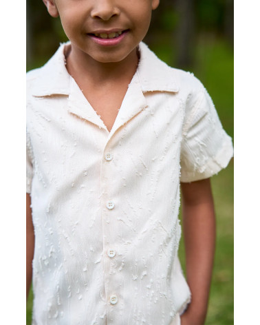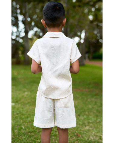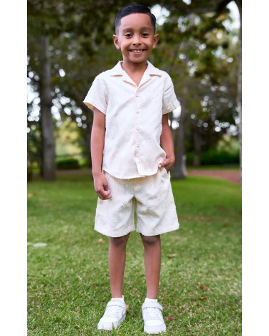 Ensemble garçon composé d une chemise à manches courtes avec boutons et d un bermuda assorti en tissu texturé. Confortable et pratique, disponible en trois coloris et parfait pour s associer aux autres looks de la famille.