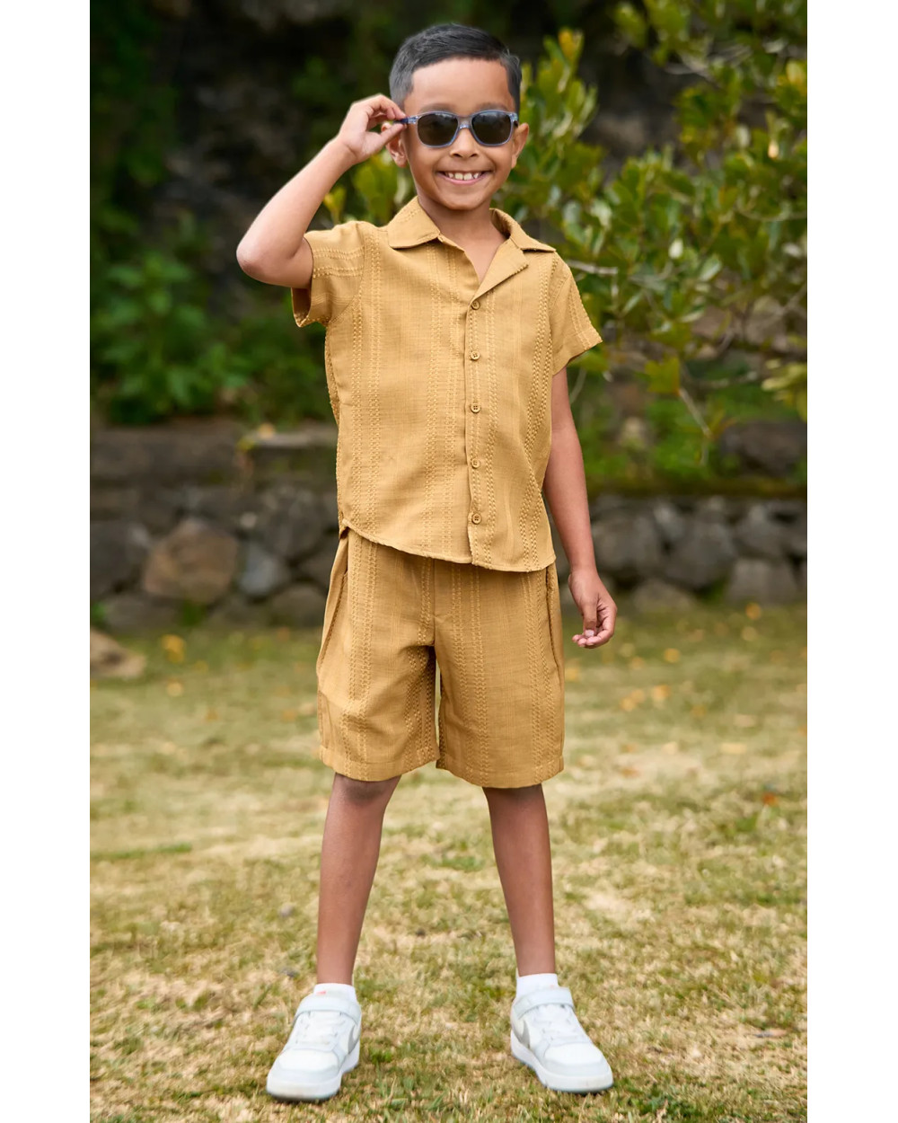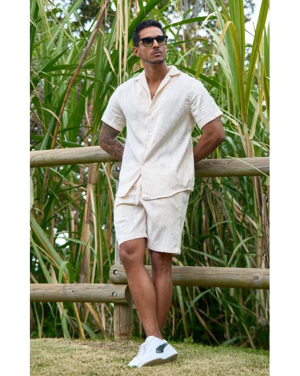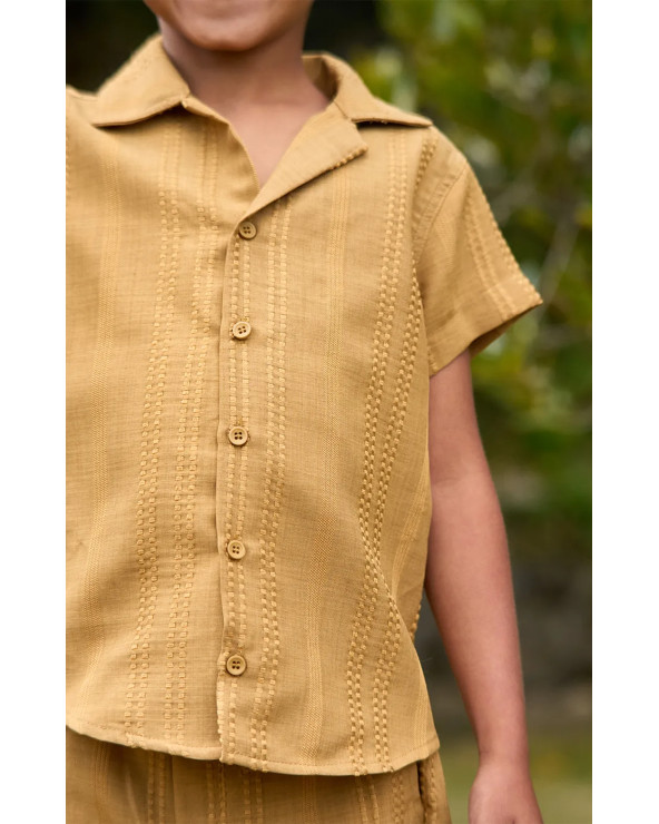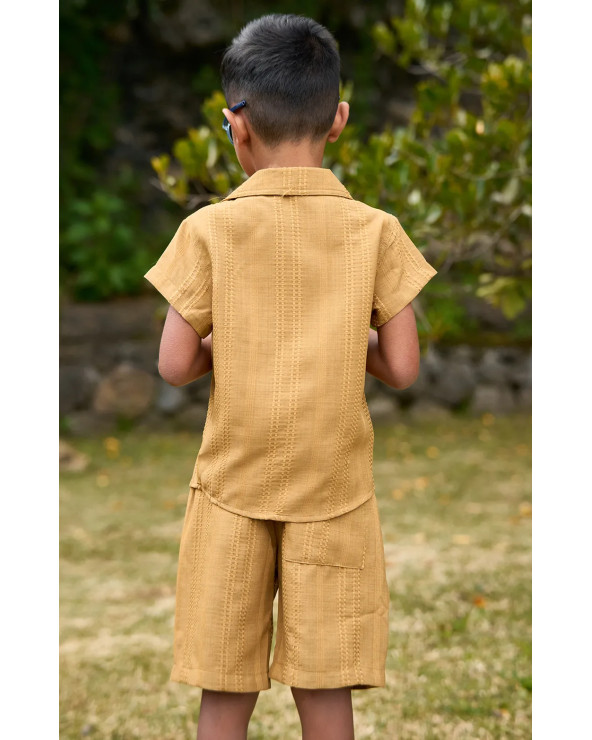 Ensemble garçon composé d une chemise à manches courtes avec boutons et d un bermuda assorti en tissu texturé. Confortable et pratique, disponible en trois coloris et parfait pour s associer aux autres looks de la famille.