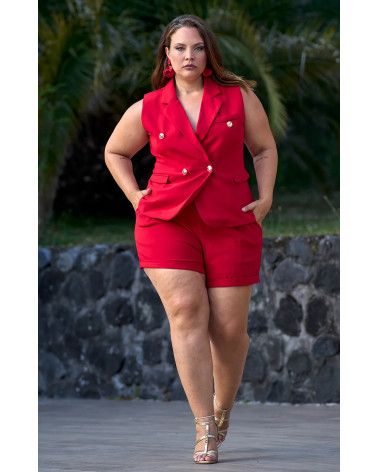 Ce tailleur short se compose d un gilet sans manches orné de boutons chics et de fausses poches décoratives, pour un look ultra sophistiqué. Une tenue parfaite pour allier élégance et modernité.