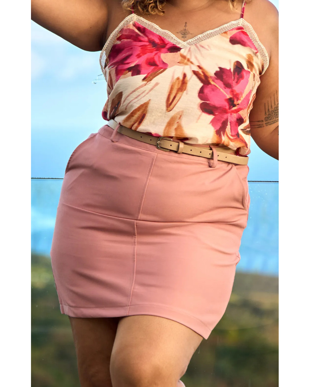 Cette jupe trapèze à ceinture combine style et fonctionnalité grâce à ses deux poches à l avant. Disponible en noir ou en rose, elle s associe facilement au caraco assorti pour un ensemble raffiné.