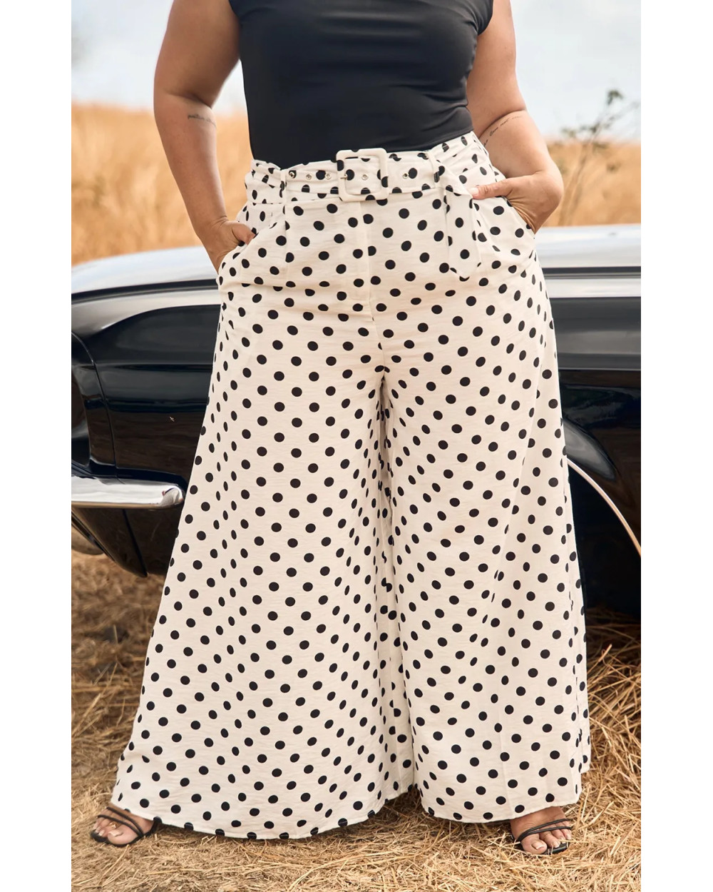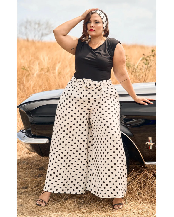 Alliez confort et élégance avec ce pantalon large à pois. Conçu dans une matière fluide, il offre une coupe ample et agréable à porter. Sa ceinture assortie avec boucle carrée souligne joliment la taille et apporte une touche tendance. Disponible en noir à pois blancs et en blanc à pois noirs, il s adapte à toutes vos envies pour un look chic et moderne.