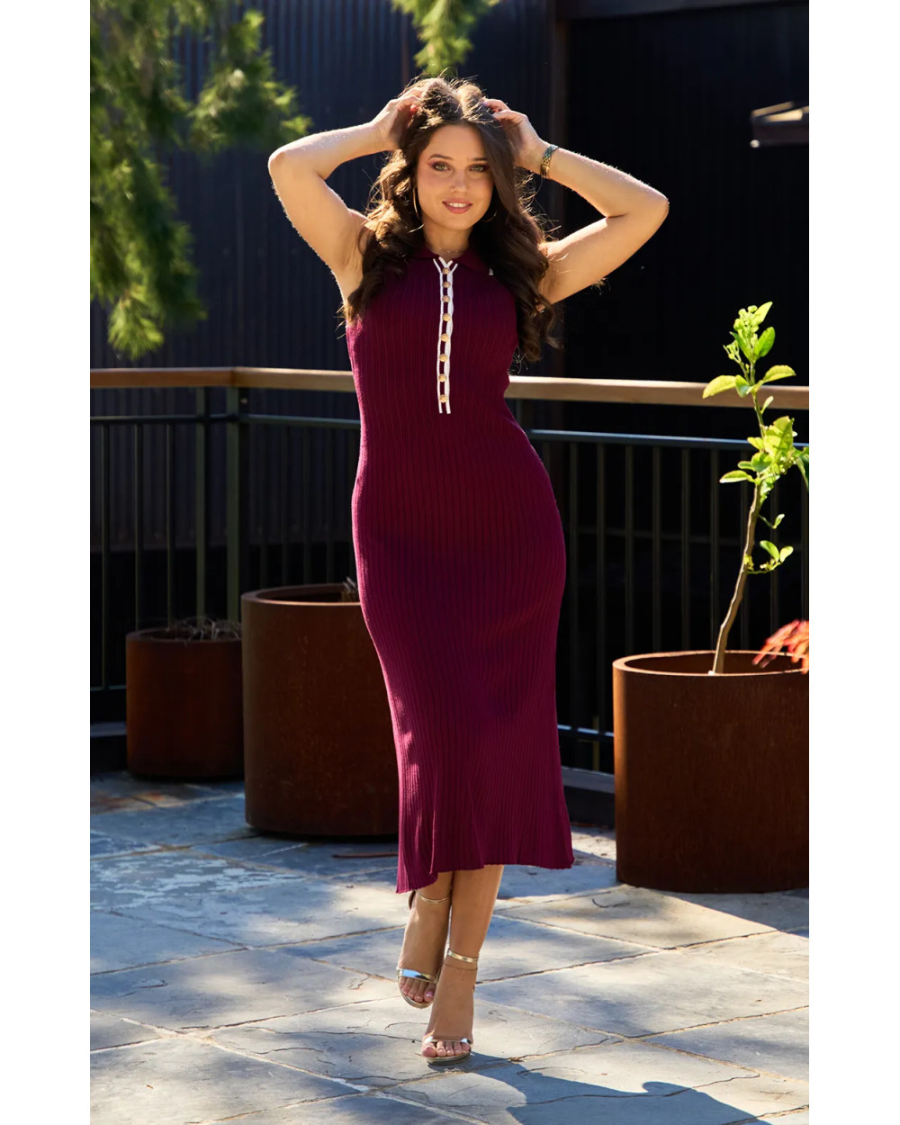 Craquez pour cette robe en maille côtelée qui sublime la silhouette tout en offrant un confort absolu. Son col polo, ses boutons dorés décoratifs et sa coupe mi-longue en font la pièce parfaite pour un look chic et structuré. À porter avec une ceinture fine et des escarpins pour une allure affirmée. Ceinture non incluse