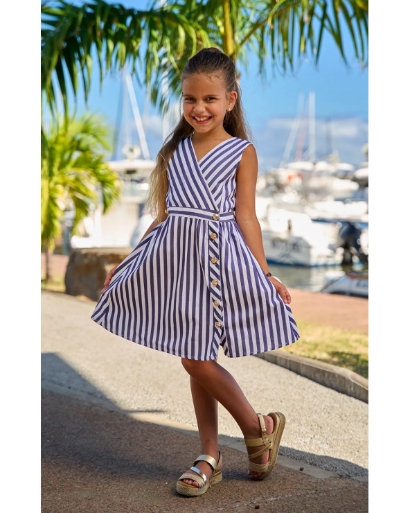 Craquez pour la robe croisée à rayures rouge et blanc en version enfant fille, aussi jolie que confortable. Avec son col en V croisé, sa taille marquée et sa matière légère, elle est parfaite pour les journées ensoleillées à La Réunion. Existe aussi en bleu et blanc pour un look mère-fille assorti plein de fraîcheur