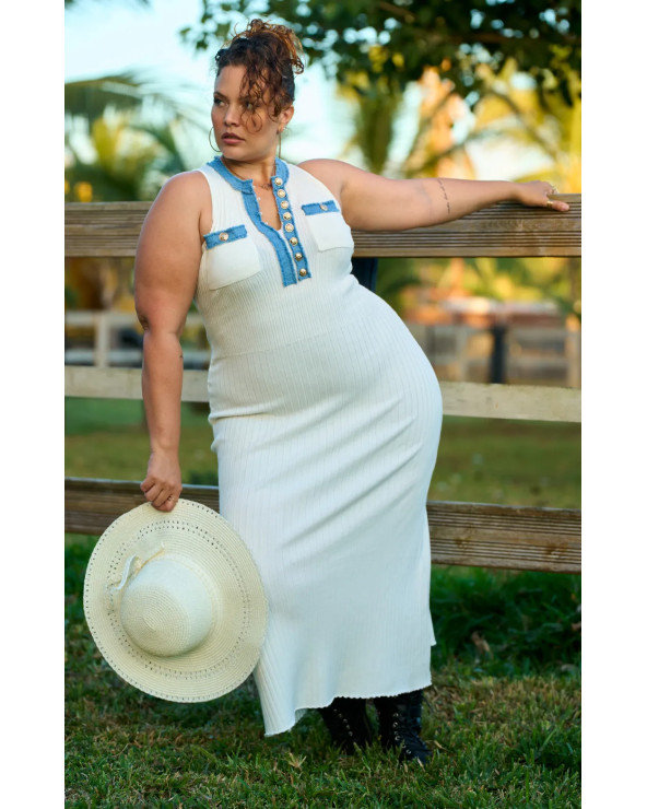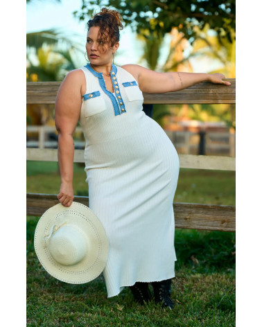 Affirmez votre style avec notre robe longue sans manches en denim femme ! Son denim léger assure un confort optimal. Admirez ses détails travaillés col et boutonnière et ses poches poitrine pratiques. Cette robe mode femme est idéale pour un look chic et décontracté.