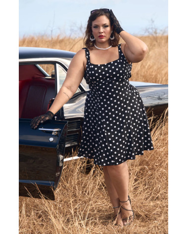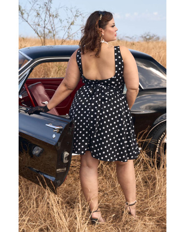 La robe Lolipop séduit par son imprimé à pois et sa coupe courte. Le haut sans manches se combine à un bas fluide pour créer un look à la fois élégant et plein de légèreté. Retrouvez-la en trois coloris : noir, écru ou bordeaux.