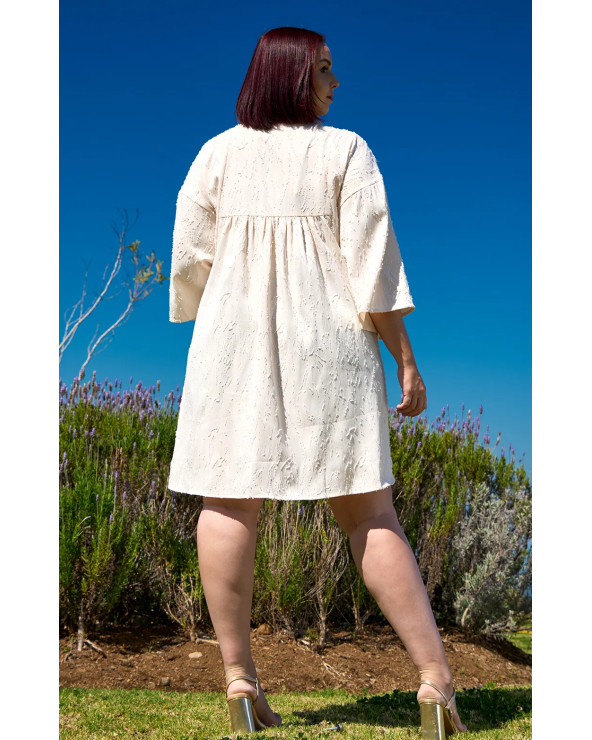 Cette robe courte en tissu texturé, fluide et à manches mi-longues, est disponible en 3 coloris. Confortable et élégante, elle s accorde parfaitement aux autres pièces de la collection famille.