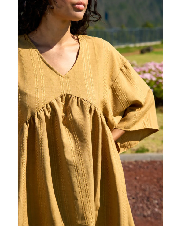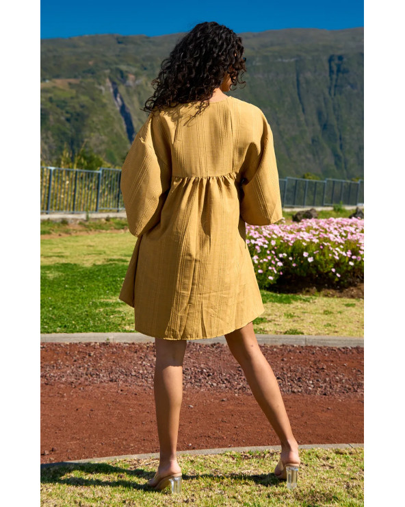 Cette robe courte en tissu texturé, fluide et à manches mi-longues, est disponible en 3 coloris. Confortable et élégante, elle s accorde parfaitement aux autres pièces de la collection famille.
