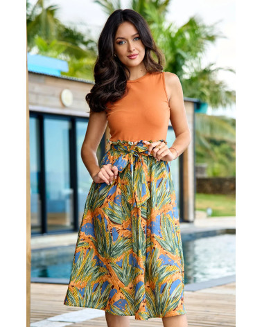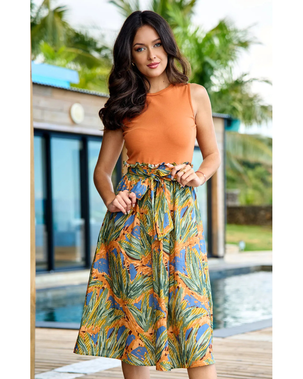 Découvrez la Robe Botanique, une pièce idéale pour enrichir votre garde-robe. Son haut débardeur s associe à un bas patineux aux motifs fleuris, rehaussé d une ceinture assortie. Déclinée en marron, noir et kaki, elle conjugue style et confort.