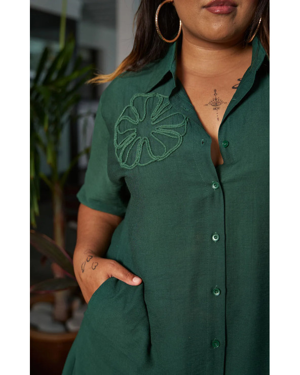 Découvrez la robe opale, une robe chemise ornée de deux fleurs brodées presque ton sur ton, avec des poches pratiques sur les côtés. Disponible en 6 coloris, elle allie style, confort et subtilité pour toutes vos occasions.