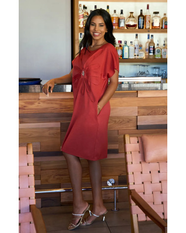 Cette robe fluide se distingue par son motif soleil ton sur ton. Déclinée en 7 coloris, elle apporte confort et style pour vos tenues de fêtes.
