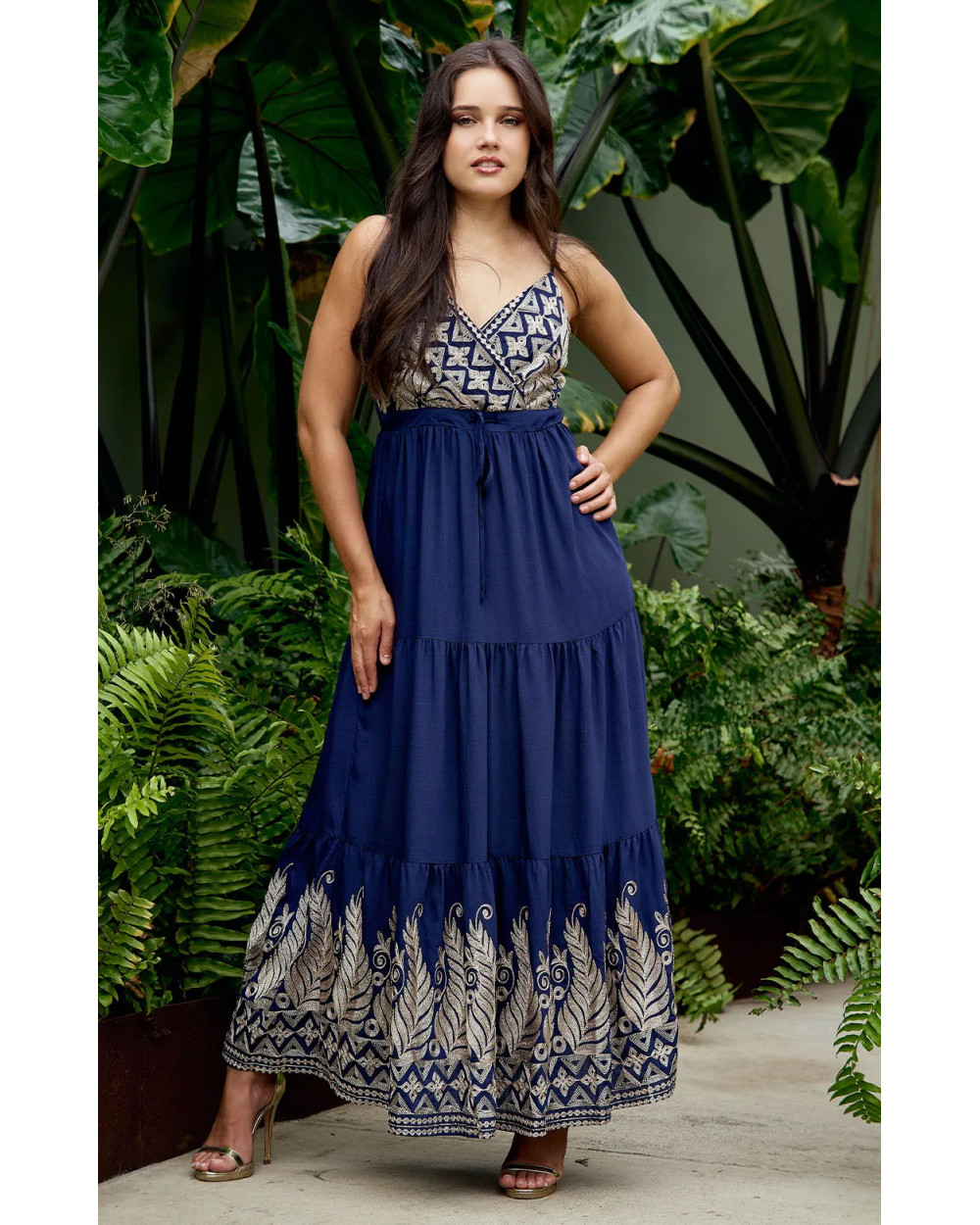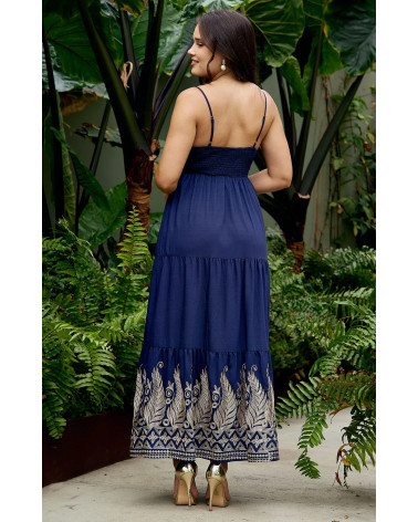 Optez pour cette robe longue à bretelles au cache-cœur flatteur, ponctuée d un nœud à la taille. Ses motifs feuilles et graphiques, répartis sur le haut et le bas, créent un équilibre parfait entre élégance et originalité. Parfaite pour un look mère et fille coordonné.