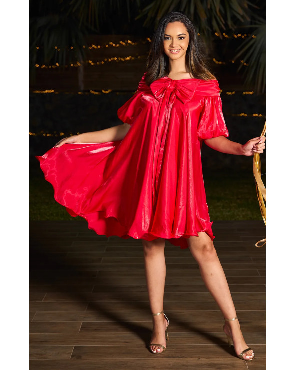 Robe courte festive avec bretelles fines et jupe à trois volants, offrant légèreté et mouvement. Parfaite pour un look joyeux et élégant lors des célébrations de fin d’année.